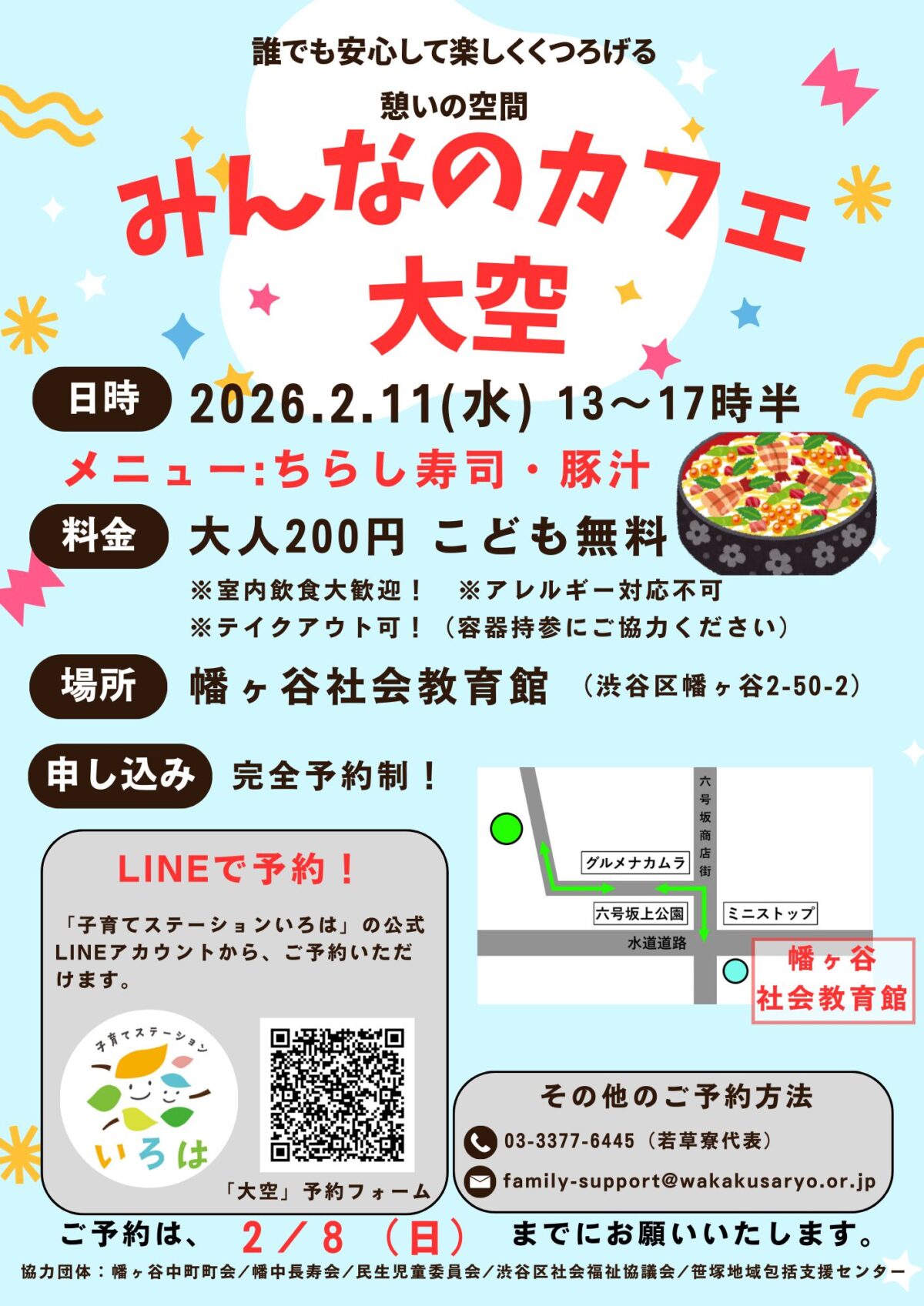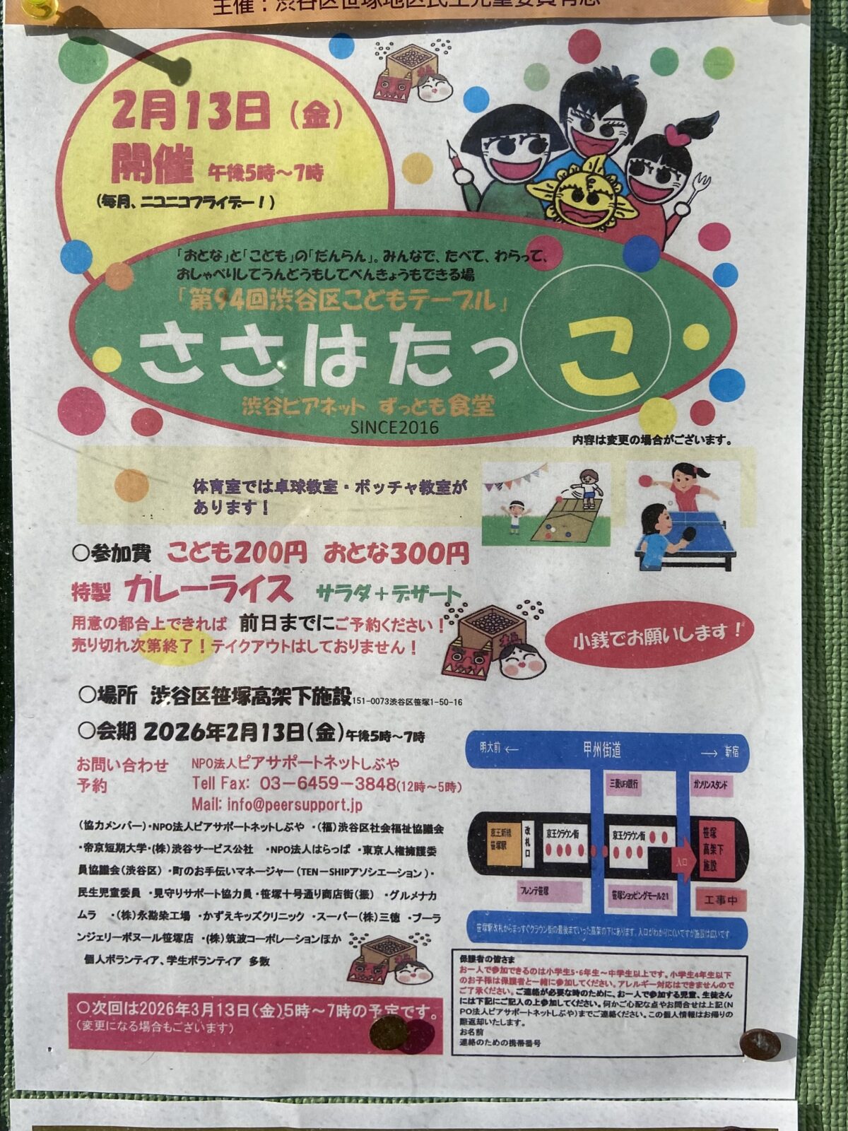 座談会「見えにくい世界で、頂点を見つめる 盲導犬シュクレとともに パラトライアスリート 中澤隆さん」開催日 02/22〜02/22開催日 02/22〜02/22イベントセミナー・講習笹塚シニア向けファミリー向け中高生向け子供向け無料申込制 笹塚ひろば 2月「カップケーキの小物入れをつくろう!!」開催日 02/18〜02/18開催日 02/18〜02/18イベントワークショップ助け合い笹塚ファミリー向け子供向け無料 第十九回 梅花もちつき大会開催日 02/15〜02/15開催日 02/15〜02/15イベント初台シニア向けファミリー向け中高生向け子供向け有料 イベント、応募、メンバー募集など 令和7年度 千駄ヶ谷社会教育館文化祭開催日 02/14〜02/15開催日 02/14〜02/15イベントお祭り・フェスワークショップ鑑賞・観戦渋谷区他シニア向けファミリー向け中高生向け子供向け有料無料 子供食堂 @Table かば山開催日 02/14〜02/14開催日 02/14〜02/14イベントこども食堂幡ヶ谷ファミリー向け子供向け有料無料 寄席鑑賞会 本町二丁目町会 2026開催日 02/28〜02/28開催日 02/28〜02/2802/14〜 02/15 締切イベントツアー鑑賞・観戦渋谷区外シニア向けファミリー向け有料申込制 『取り残された人々: 日本におけるシングルマザーの苦境』上映会開催日 02/11〜02/11開催日 02/11〜02/11〜 02/10 締切イベントセミナー・講習鑑賞・観戦渋谷区他無料申込制 中幡小学校避難所訓練開催日 02/14〜02/14開催日 02/14〜02/14イベント助け合い幡ヶ谷シニア向けファミリー向け中高生向け無料 第8回 渋三さくら祭り 2026開催日 02/13〜02/22開催日 02/13〜02/22イベントお祭り・フェス渋谷区他シニア向けファミリー向け中高生向け子供向け有料無料 第十九回 梅花もちつき大会開催日 02/15〜02/15開催日 02/15〜02/15イベント初台シニア向けファミリー向け中高生向け子供向け有料 SHIBUYA GAMES WEEK 2026開催日 02/06〜02/15開催日 02/06〜02/15イベントお祭り・フェスワークショップ鑑賞・観戦渋谷区他ファミリー向け子供向け有料無料申込制 ぼくの絵わたしの絵展~第85回全国教育美術展~開催日 02/07〜02/15開催日 02/07〜02/15イベント鑑賞・観戦渋谷区他シニア向けファミリー向け中高生向け子供向け無料 国立科学博物館巡回展 ダーウィンを驚かせた鳥たち開催日 02/03〜04/12開催日 02/03〜04/12イベント鑑賞・観戦渋谷区他ファミリー向け中高生向け子供向け無料 夫婦・パートナーへの「モヤモヤ」を整理するワークショップ開催日 02/20〜02/20開催日 02/20〜02/20イベントワークショップ渋谷区他無料申込制 DIG SHIBUYA ディグシブヤ 2026開催日 02/13〜02/15開催日 02/13〜02/15イベントお祭り・フェスワークショップ鑑賞・観戦渋谷区他ファミリー向け中高生向け子供向け有料無料 遊べるこども食堂 幡ヶ谷社会教育館開催日 02/14〜02/14開催日 02/14〜02/14イベントこども食堂幡ヶ谷ファミリー向け中高生向け子供向け有料無料 シブい運動会 2026 〜常識を超えて愉しもう!〜開催日 02/11〜02/11開催日 02/11〜02/1101/18イベントスポーツ渋谷区他ファミリー向け中高生向け子供向け無料申込制 笹塚ひろば 2月「カップケーキの小物入れをつくろう!!」開催日 02/18〜02/18開催日 02/18〜02/18イベントワークショップ助け合い笹塚ファミリー向け子供向け無料 あんしん 終活セミナー開催日 02/10〜02/10開催日 02/10〜02/10〜 01/30 締切イベントセミナー・講習渋谷区他シニア向け無料申込制もっと読む 令和7年度 千駄ヶ谷社会教育館文化祭開催日 02/14〜02/15開催日 02/14〜02/15イベントお祭り・フェスワークショップ鑑賞・観戦渋谷区他シニア向けファミリー向け中高生向け子供向け有料無料 子供食堂 @Table かば山開催日 02/14〜02/14開催日 02/14〜02/14イベントこども食堂幡ヶ谷ファミリー向け子供向け有料無料 寄席鑑賞会 本町二丁目町会 2026開催日 02/28〜02/28開催日 02/28〜02/2802/14〜 02/15 締切イベントツアー鑑賞・観戦渋谷区外シニア向けファミリー向け有料申込制 『取り残された人々: 日本におけるシングルマザーの苦境』上映会開催日 02/11〜02/11開催日 02/11〜02/11〜 02/10 締切イベントセミナー・講習鑑賞・観戦渋谷区他無料申込制 中幡小学校避難所訓練開催日 02/14〜02/14開催日 02/14〜02/14イベント助け合い幡ヶ谷シニア向けファミリー向け中高生向け無料 第8回 渋三さくら祭り 2026開催日 02/13〜02/22開催日 02/13〜02/22イベントお祭り・フェス渋谷区他シニア向けファミリー向け中高生向け子供向け有料無料 第十九回 梅花もちつき大会開催日 02/15〜02/15開催日 02/15〜02/15イベント初台シニア向けファミリー向け中高生向け子供向け有料 SHIBUYA GAMES WEEK 2026開催日 02/06〜02/15開催日 02/06〜02/15イベントお祭り・フェスワークショップ鑑賞・観戦渋谷区他ファミリー向け子供向け有料無料申込制もっと読む 町かど通信 カルディコーヒーファーム笹塚店特別セール中!ローカルニュース 笹塚惣菜さん1月のメニュー表ローカルニュース 筑波コーポレーション 年末肉の特別販売会 2025ローカルニュース 東北沢駅前にパン屋さん「VIE DE FRANCE」オープン!ローカルニュース 笹塚惣菜さん12月のメニュー表ローカルニュース 毎年イ