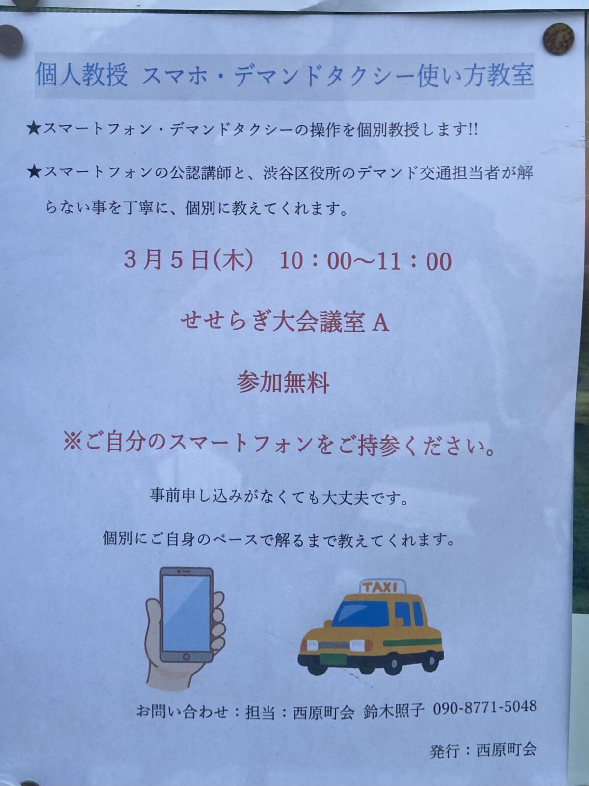 個人教授 スマホ・デマンドタクシー使い方教室開催日 03/05〜03/05開催日 03/05〜03/05イベントフレイル予防助け合い幡ヶ谷シニア向け無料 にこにこボウリングたいけんかい開催日 03/01〜03/01開催日 03/01〜03/01イベントスポーツ遊び場笹塚ファミリー向け子供向け無料申込制 神田川をお花見散歩 2026開催日 03/21〜03/21開催日 03/21〜03/21〜 03/04 締切イベントツアー桜イベント渋谷区外シニア向けファミリー向け中高生向け子供向け有料申込制 思春期・不登校でも大丈夫!と思える 子供の才能を伸ばす “見守り”の心理学開催日 02/28〜02/28開催日 02/28〜02/28イベントセミナー・講習渋谷区他ファミリー向け無料申込制 イベント、応募、メンバー募集など JAPANISM 日本文化体験フェス「SAKURA」開催日 03/15〜03/15開催日 03/15〜03/15イベントお祭り・フェスワークショップ桜イベント鑑賞・観戦渋谷区他シニア向けファミリー向け中高生向け有料無料申込制 初台地区フリーマーケット 2026年3月開催日 03/15〜03/15開催日 03/15〜03/15〜 03/14 締切イベントマルシェ・フリマ初台シニア向けファミリー向け有料 第42回 えびす社教館まつり 2026開催日 03/07〜03/08開催日 03/07〜03/08イベントお祭り・フェス渋谷区他シニア向けファミリー向け中高生向け子供向け有料無料 親子で学ぶ通学・通塾の安全ワークショップ開催日 02/28〜02/28開催日 02/28〜02/28イベントセミナー・講習ワークショップ渋谷区他ファミリー向け子供向け無料申込制 謎解きイベント「ちがいの世界からの挑戦状」開催日 02/28〜02/28開催日 02/28〜02/28イベントワークショップ助け合い渋谷区他ファミリー向け中高生向け子供向け無料申込制 神田川をお花見散歩 2026開催日 03/21〜03/21開催日 03/21〜03/21〜 03/04 締切イベントツアー桜イベント渋谷区外シニア向けファミリー向け中高生向け子供向け有料申込制 個人教授 スマホ・デマンドタクシー使い方教室開催日 03/05〜03/05開催日 03/05〜03/05イベントフレイル予防助け合い幡ヶ谷シニア向け無料 渋谷どこでも運動場プロジェクト キャラバン @氷川 プレイストリート開催日 03/01〜03/01開催日 03/01〜03/01イベントスポーツ遊び場渋谷区他ファミリー向け子供向け無料 親子で参加! 自然遊びの無料体験会開催日 03/01〜03/01開催日 03/01〜03/01イベントワークショップ遊び場渋谷区他ファミリー向け子供向け無料申込制 にこにこボウリングたいけんかい開催日 03/01〜03/01開催日 03/01〜03/01イベントスポーツ遊び場笹塚ファミリー向け子供向け無料申込制 三角広場まつり キッズスポーツフェスタ2026開催日 02/28〜03/01開催日 02/28〜03/01イベントお祭り・フェススポーツ渋谷区外ファミリー向け中高生向け子供向け有料無料申込制 LET’S PLAY STREET!!開催日 02/28〜02/28開催日 02/28〜02/28イベントスポーツワークショップ渋谷区他ファミリー向け中高生向け子供向け無料 ファーマーズ&キッズフェスタ2026開催日 02/28〜03/01開催日 02/28〜03/01イベントお祭り・フェスマルシェ・フリマ渋谷区他ファミリー向け子供向け有料無料 思春期・不登校でも大丈夫!と思える 子供の才能を伸ばす “見守り”の心理学開催日 02/28〜02/28開催日 02/28〜02/28イベントセミナー・講習渋谷区他ファミリー向け無料申込制 HAHA!JAM こども食堂開催日 03/18〜03/18開催日 03/18〜03/18イベントこども食堂初台ファミリー向け中高生向け子供向け有料申込制 子供食堂 @Table かば山開催日 03/28〜03/28開催日 03/28〜03/28イベントこども食堂幡ヶ谷ファミリー向け子供向け有料無料もっと読む JAPANISM 日本文化体験フェス「SAKURA」開催日 03/15〜03/15開催日 03/15〜03/15イベントお祭り・フェスワークショップ桜イベント鑑賞・観戦渋谷区他シニア向けファミリー向け中高生向け有料無料申込制 初台地区フリーマーケット 2026年3月開催日 03/15〜03/15開催日 03/15〜03/15〜 03/14 締切イベントマルシェ・フリマ初台シニア向けファミリー向け有料 第42回 えびす社教館まつり 2026開催日 03/07〜03/08開催日 03/07〜03/08イベントお祭り・フェス渋谷区他シニア向けファミリー向け中高生向け子供向け有料無料 親子で学ぶ通学・通塾の安全ワークショップ開催日 02/28〜02/28開催日 02/28〜02/28イベントセミナー・講習ワークショップ渋谷区他ファミリー向け子供向け無料申込制 謎解きイベント「ちがいの世界からの挑戦状」開催日 02/28〜02/28開催日 02/28〜02/28イベントワークショップ助け合い渋谷区他ファミリー向け中高生向け子供向け無料申込制 神田川をお花見散歩 2026開催日 03/21〜03/21開催日 03/21〜03/21〜 03/04 締切イベントツアー桜イベント渋谷区外シニア向けファミリー向け中高生向け子供向け有料申込制 個人教授 スマホ・デマンドタクシー使い方教室開催日 03/05〜03/05開催日 03/05〜03/05イベントフレイル予防助け合い幡ヶ谷シニア向け無料 渋谷どこでも運動場プロジェクト キャラバン @氷川 プレイストリート開催日 03/01〜03/01開催日 03/01〜03/01イベントスポーツ遊び場渋谷区他ファミリー向け子供向け無料もっと読む 町かど通信 笹塚駅前に回転寿司「スシロー」オ