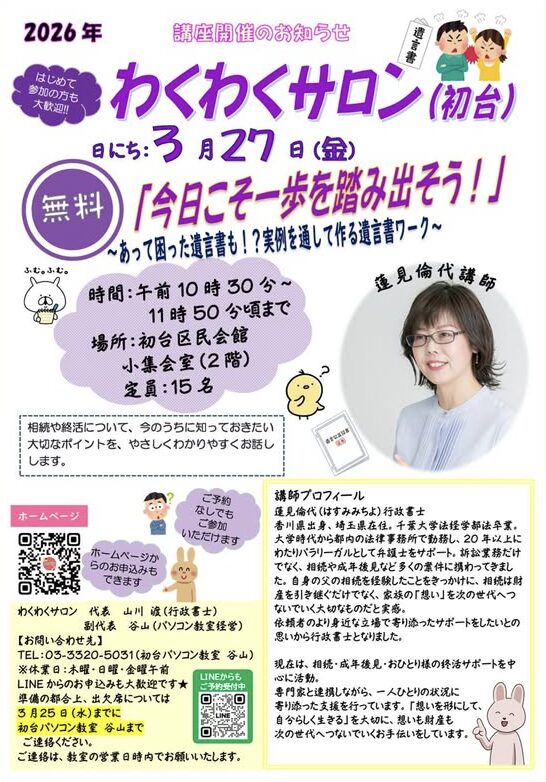 フレイル予防&終活ノートについての講座開催日 03/25〜03/25開催日 03/25〜03/25イベントセミナー・講習フレイル予防初台シニア向け無料 水よう日は あきち開放だ あきちディグディグ みんなの広場開催日 03/04〜04/08開催日 03/04〜04/08イベント遊び場幡ヶ谷ファミリー向け中高生向け子供向け無料 本町二丁目町会 さくら祭り 2026開催日 03/28〜03/28開催日 03/28〜03/28イベントお祭り・フェス桜イベント初台シニア向けファミリー向け中高生向け子供向け有料無料 代々木交通安全のつどい in 笹塚開催日 03/28〜03/28開催日 03/28〜03/28イベントお祭り・フェス笹塚ファミリー向け子供向け無料 イベント、応募、メンバー募集など こども夢の商店街 @東京オペラシティ 2026.3月開催日 03/28〜03/29開催日 03/28〜03/29イベントエントリー募集マルシェ・フリマワークショップ初台ファミリー向け中高生向け子供向け有料申込制 Nゲージ大運行会 2026開催日 03/28〜03/29開催日 03/28〜03/29イベント遊び場鑑賞・観戦渋谷区他シニア向けファミリー向け中高生向け子供向け無料 わくわくサロン(初台)「今日こそ一歩を踏み出そう!」開催日 03/27〜03/27開催日 03/27〜03/27〜 03/25 締切イベントセミナー・講習フレイル予防初台シニア向け無料申込制 第34回 しぶやさくらまつり 2026開催日 03/28〜04/05開催日 03/28〜04/05イベント桜イベント渋谷区他シニア向けファミリー向け中高生向け子供向け有料無料 西原町会 餅つき大会 2026開催日 03/29〜03/29開催日 03/29〜03/29イベント幡ヶ谷シニア向けファミリー向け中高生向け有料 LET’S PLAY STREET!!開催日 03/28〜03/28開催日 03/28〜03/28イベントスポーツ渋谷区他ファミリー向け中高生向け子供向け無料 笹塚仲町会 お花見 2026開催日 03/28〜03/28開催日 03/28〜03/28イベント桜イベント笹塚シニア向けファミリー向け有料 せせらぎ さくらコンサート 2026開催日 03/26〜03/26開催日 03/26〜03/26イベント桜イベント鑑賞・観戦幡ヶ谷シニア向けファミリー向け無料 本町二丁目町会 さくら祭り 2026開催日 03/28〜03/28開催日 03/28〜03/28イベントお祭り・フェス桜イベント初台シニア向けファミリー向け中高生向け子供向け有料無料 富ヶ谷オーガニックマルシェ開催日 03/23〜03/23開催日 03/23〜03/23イベントマルシェ・フリマ渋谷区他シニア向けファミリー向け有料無料 笹塚ボウル × 豆庭杯 2026開催日 03/31〜03/31開催日 03/31〜03/31〜 03/18 締切イベントエントリー募集スポーツ笹塚ファミリー向け中高生向け子供向け有料申込制 笹塚にあるやしのき保育園です!他のお知らせその他募集笹塚 新宿中央公園 夜桜ライトアップ 2026開催日 03/20〜04/12開催日 03/20〜04/12イベント桜イベント渋谷区外シニア向けファミリー向け無料 Jizo Fes Kids 2026開催日 03/29〜03/29開催日 03/29〜03/29イベントお祭り・フェス渋谷区他ファミリー向け子供向け無料 最新の英語教育事情を知ろう! 英語のつまづき突破セミナー開催日 03/28〜03/28開催日 03/28〜03/28イベントセミナー・講習幡ヶ谷ファミリー向け子供向け無料申込制 とうきょうの木でオリジナルたまごを作ろう! 2026開催日 03/15〜03/29開催日 03/15〜03/29イベントワークショップ渋谷区外ファミリー向け子供向け無料もっと読む こども夢の商店街 @東京オペラシティ 2026.3月開催日 03/28〜03/29開催日 03/28〜03/29イベントエントリー募集マルシェ・フリマワークショップ初台ファミリー向け中高生向け子供向け有料申込制 Nゲージ大運行会 2026開催日 03/28〜03/29開催日 03/28〜03/29イベント遊び場鑑賞・観戦渋谷区他シニア向けファミリー向け中高生向け子供向け無料 わくわくサロン(初台)「今日こそ一歩を踏み出そう!」開催日 03/27〜03/27開催日 03/27〜03/27〜 03/25 締切イベントセミナー・講習フレイル予防初台シニア向け無料申込制 第34回 しぶやさくらまつり 2026開催日 03/28〜04/05開催日 03/28〜04/05イベント桜イベント渋谷区他シニア向けファミリー向け中高生向け子供向け有料無料 西原町会 餅つき大会 2026開催日 03/29〜03/29開催日 03/29〜03/29イベント幡ヶ谷シニア向けファミリー向け中高生向け有料 LET’S PLAY STREET!!開催日 03/28〜03/28開催日 03/28〜03/28イベントスポーツ渋谷区他ファミリー向け中高生向け子供向け無料 笹塚仲町会 お花見 2026開催日 03/28〜03/28開催日 03/28〜03/28イベント桜イベント笹塚シニア向けファミリー向け有料 せせらぎ さくらコンサート 2026開催日 03/26〜03/26開催日 03/26〜03/26イベント桜イベント鑑賞・観戦幡ヶ谷シニア向けファミリー向け無料もっと読む 町かど通信 親子入浴デーなら無料!ササハタハツエリアおすすめ銭湯3選子育て情報 手土産もご褒美も手に入る♪おしゃれグローサリー店誕生! @ハレルツナガルマーケット注目スポット 笹塚惣菜さん3月のメニュー表ローカルニュース 笹塚駅前に回転寿司「スシロー」オープン予定!ローカルニュース 笹塚駅前に横浜家系ラーメン「みどり」オープン!ローカルニュース メルカリより断然こっち!不用品が売れる・買える @レインボーほんまち注目スポット 笹塚惣菜さん2月のメニュー表ローカルニュース