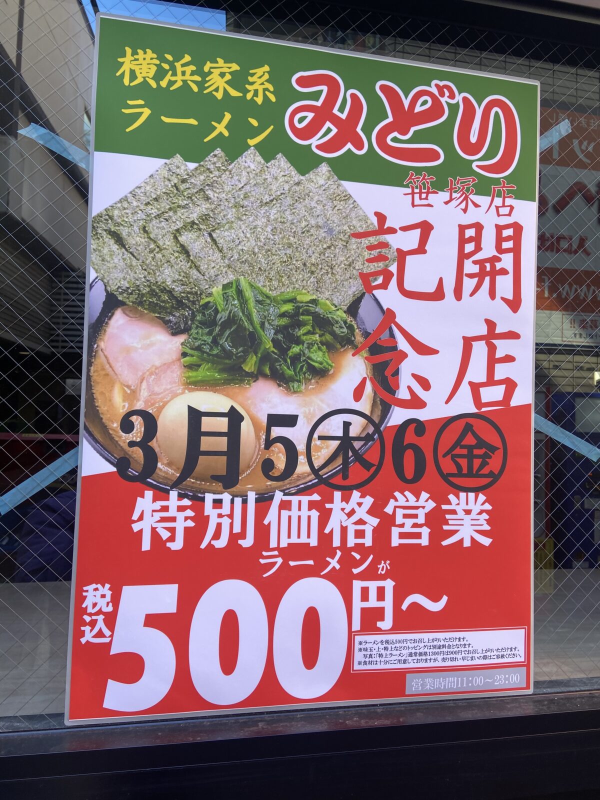 笹塚駅前に横浜家系ラーメン「みどり」オープン!