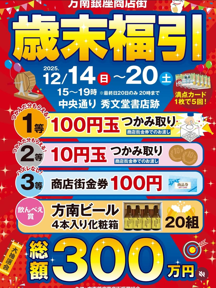 幸運くじ付き豆まき・・おみやげ袋に当たりシールを 見つけたら特別賞がもらえます。