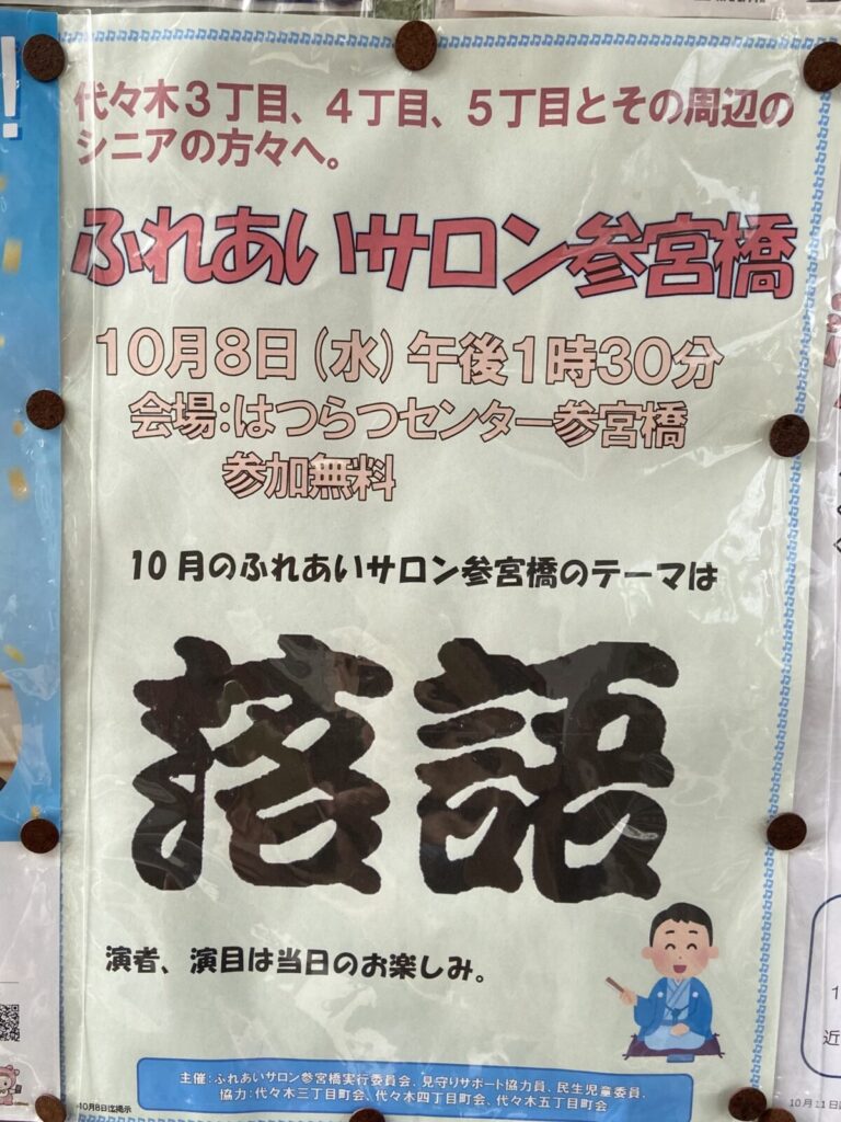 10月のふれあいサロン参宮橋のテーマは「落語」