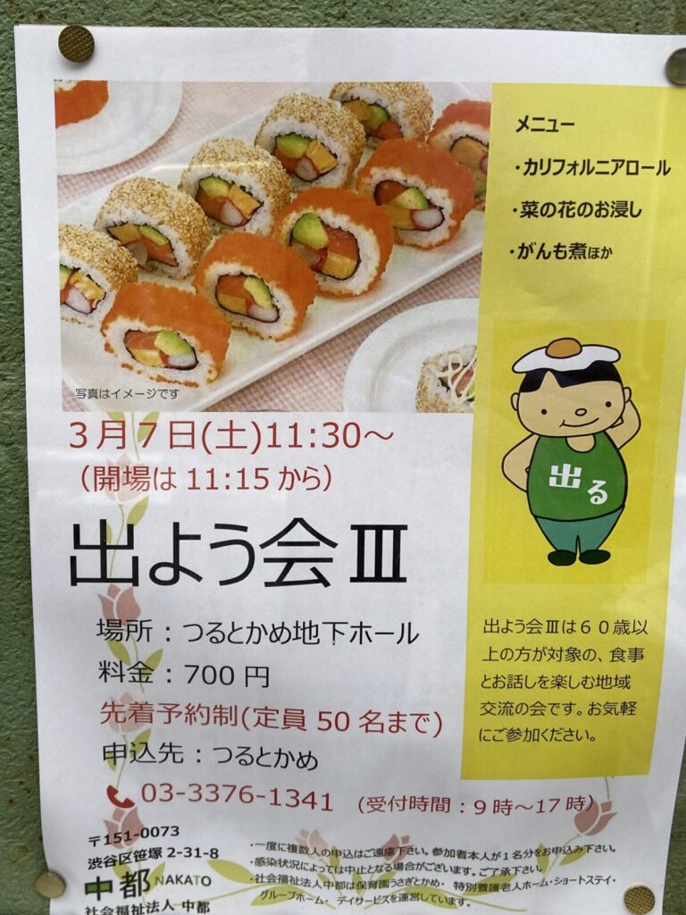 出よう会は60歳以上の方が対象の、食事とお話しを楽しむ地域交流の会です。お気軽参加ください!