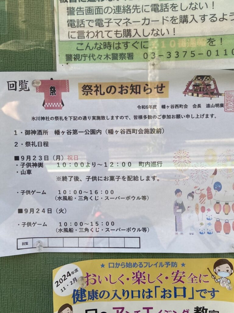 令和6年度 幡ヶ谷西町会 祭礼のお知らせ