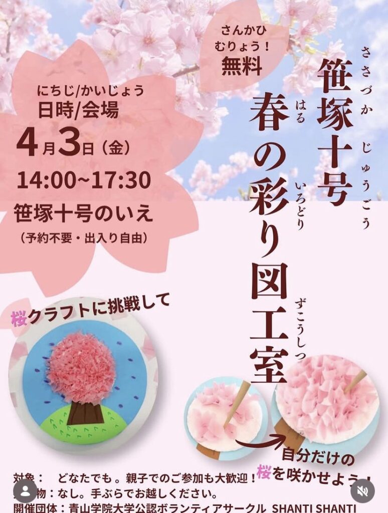 内容:桜クラフト制作体験(自由参加・出入り自由)