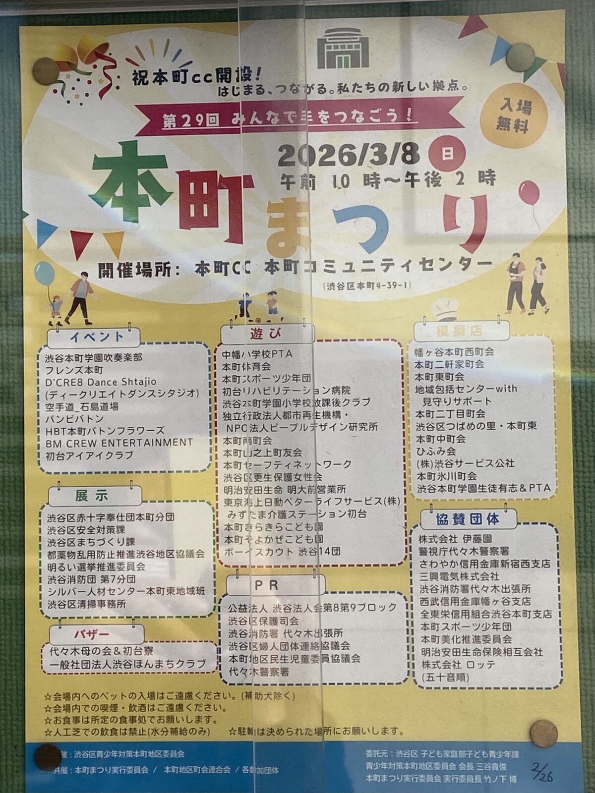 主催:はじっこまつり実行委員会(むさしの保育園、NPO法人 ゆるゆるma〜ma、高円寺『ハート・トゥ・アート』」、社会福祉法人愛成会ふらっとなかの、地域サポーター)