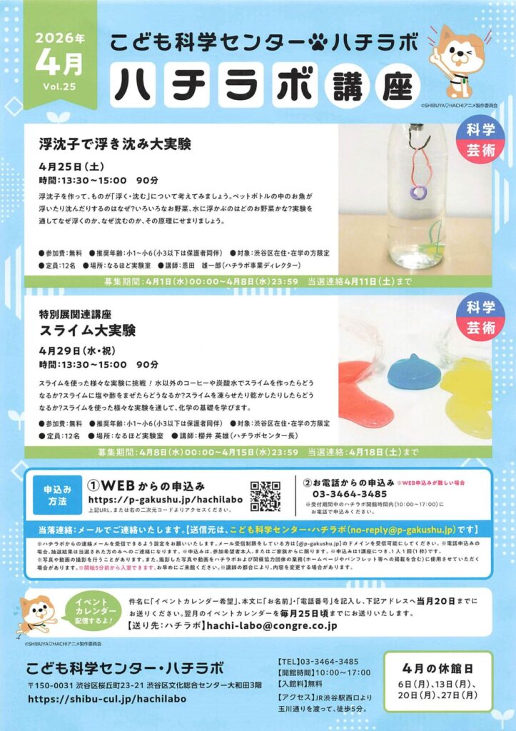 こども科学センターハチラボ ハチラボ講座 2026.4月