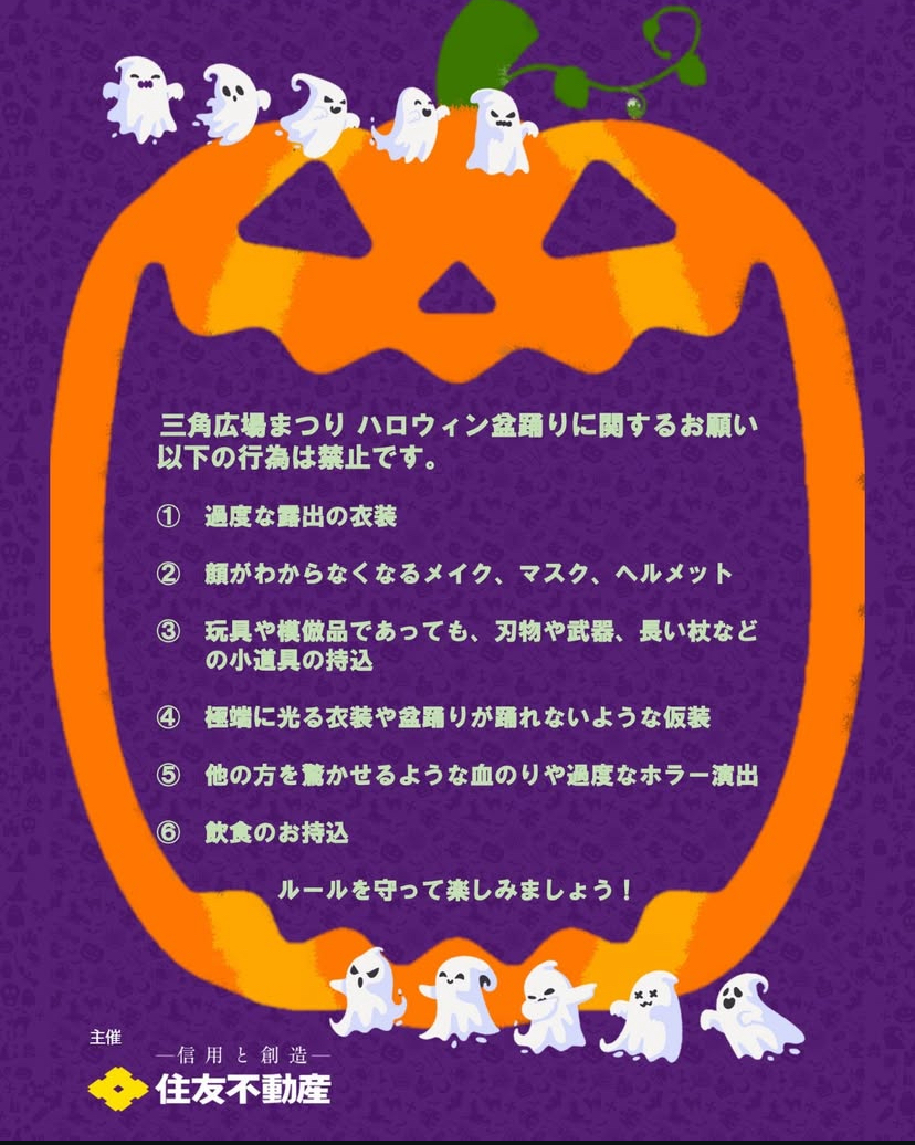 三角広場まつり ハロウィン盆踊りに関するお願い以下の行為は禁止です。