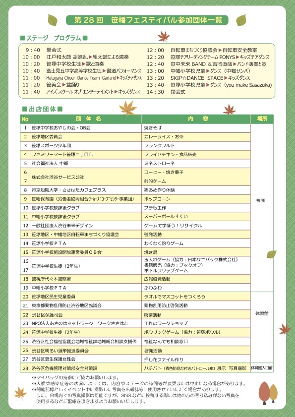 天酸や感染症等の状況によっては、内容やステージの時間等が変更または中止となる場合があります。