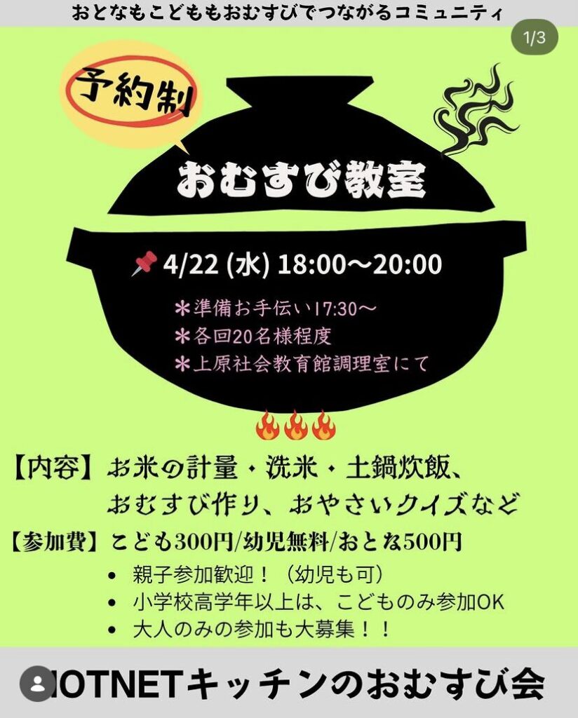 ■内容 ・お米の計量 ・洗米 ・土鍋でごはんを炊く体験 ・おむすび作り ・おむすびクイズ など 楽しく学べるプログラムをご用意しています♪